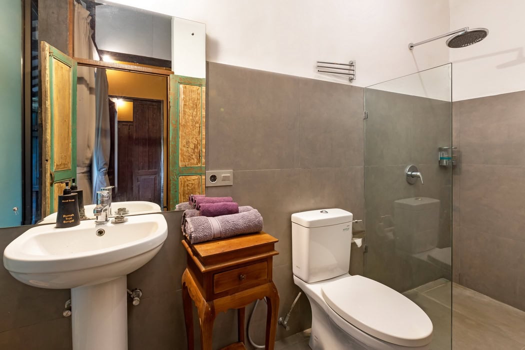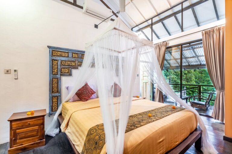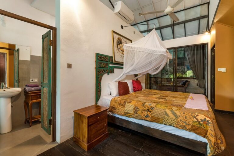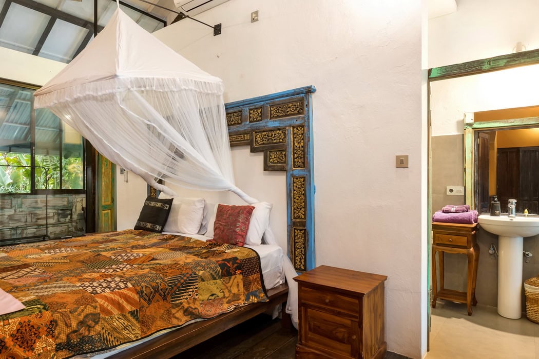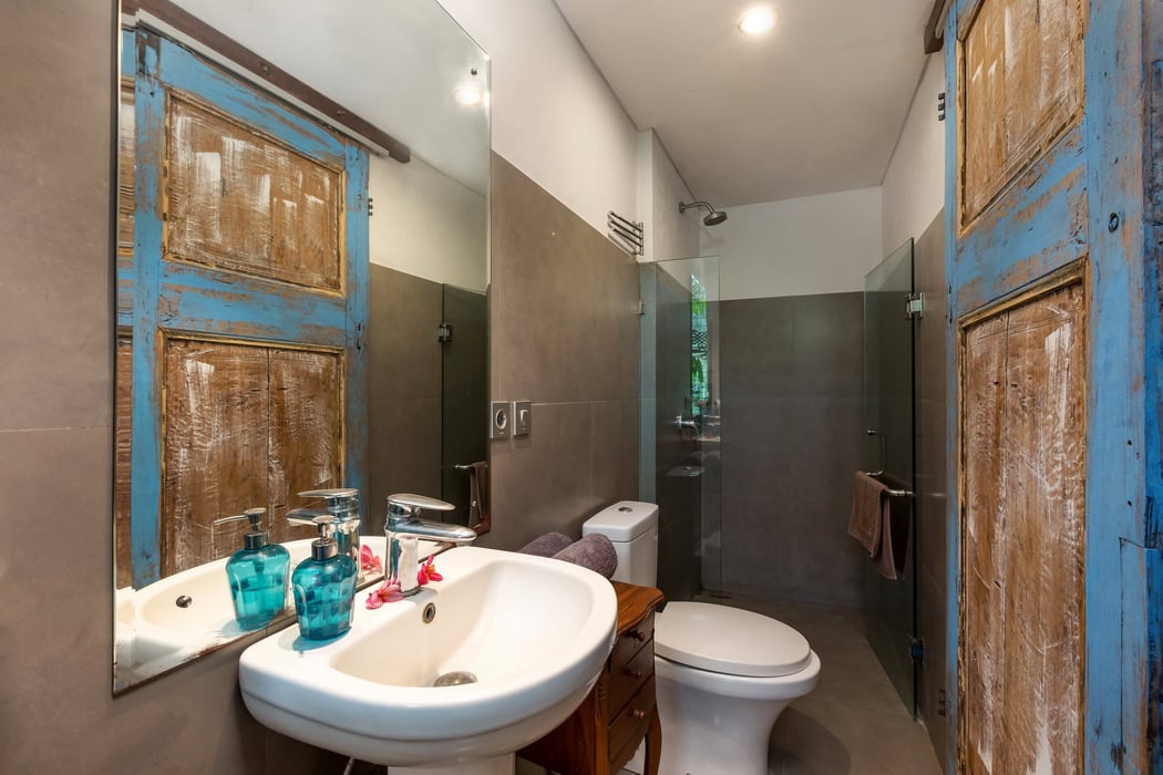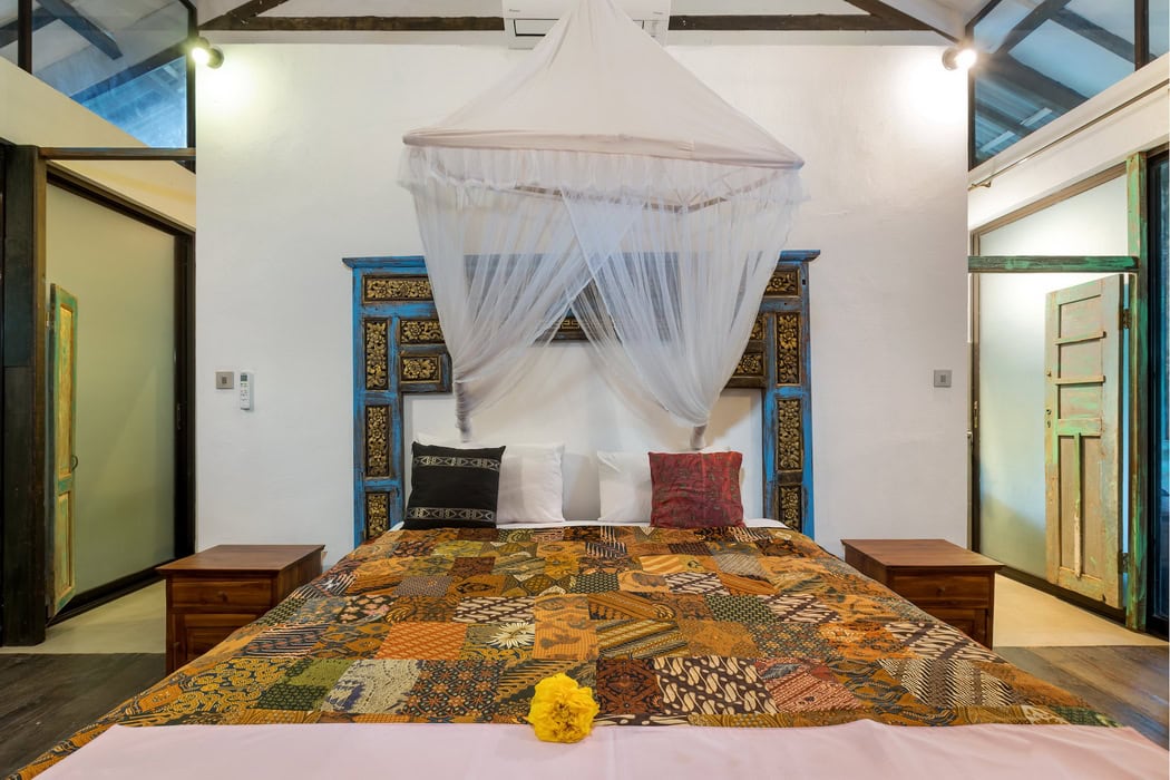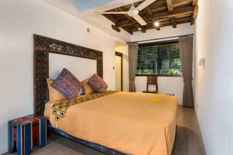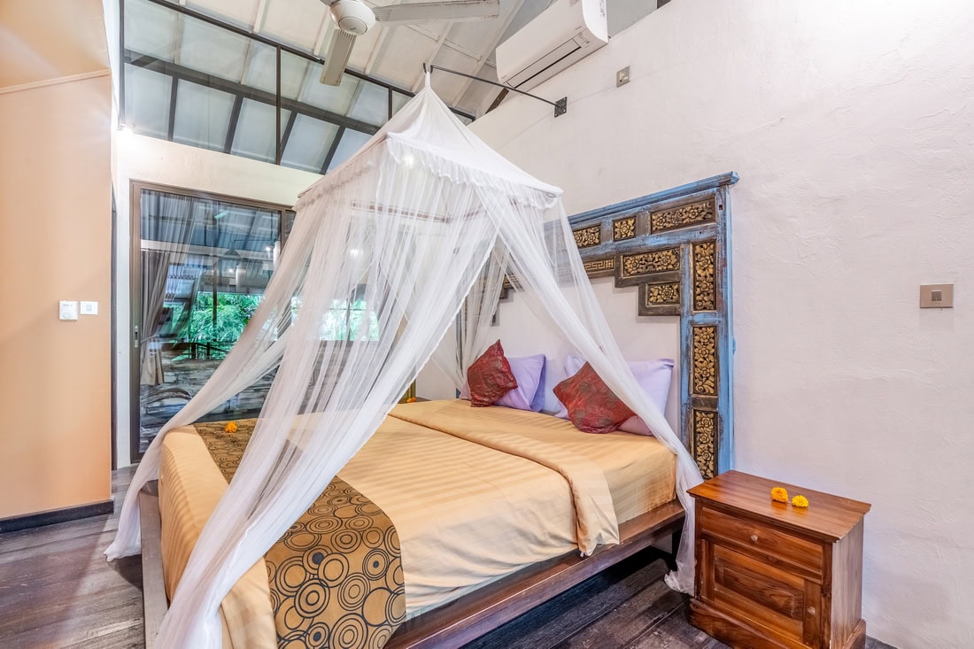 The property consists of 3 main bedrooms and a guest bungalow with 2 additional bedrooms. You can rent the entire property, totaling 5 bedrooms, or rent them separately. The rate for the 3 main bedrooms villa is $450 per night.