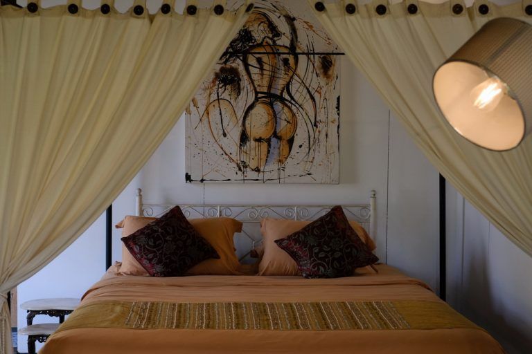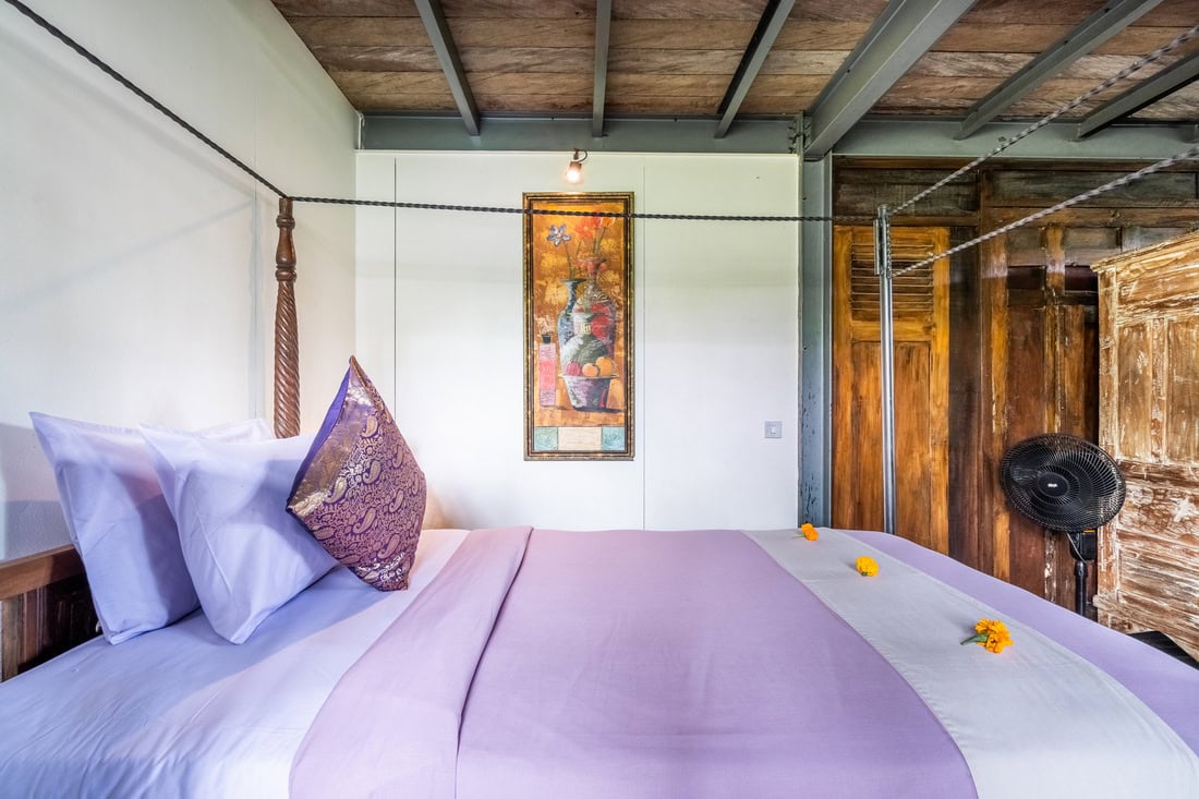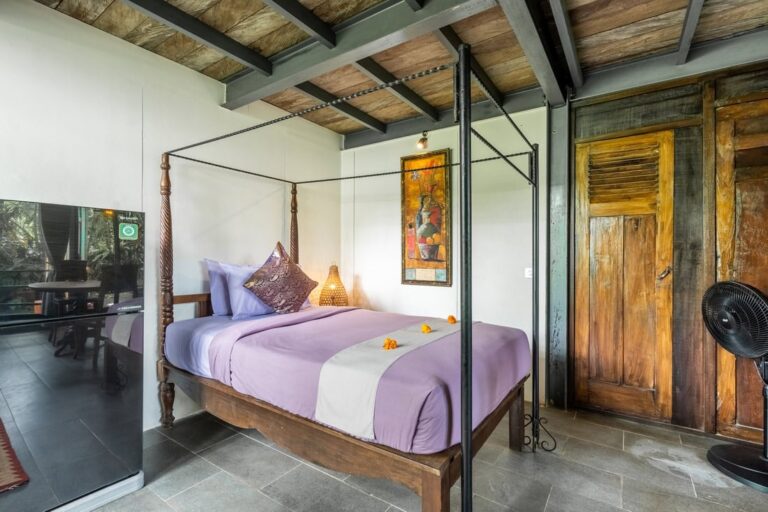 The property consists of 3 main bedrooms and a guest bungalow with 2 additional bedrooms. You can rent the entire property, totaling 5 bedrooms, or rent them separately. The rate for the 3 main bedrooms villa is $450 per night.